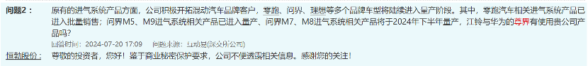 部分上市公司回复较为含蓄,如恒勃股份,公司表示鉴于商业秘密保护要求,不便透露。